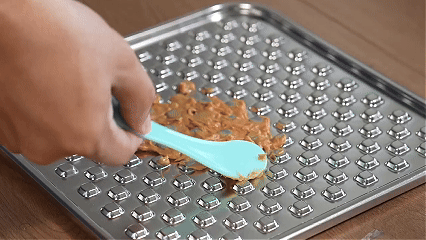 Prepare soft, sticky foods like peanut butter, yogurt, wet dog food, or pureed pumpkin.These can adhere well to the mat’s textured surface.