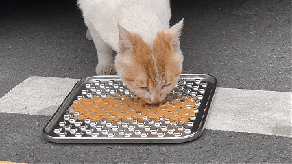 The Stainless steel licking mat is designed whisker-friendly for cat. Besides the fact that a licking mat has a calming effect on the cat, repeated licking ensures a clean tongue, which in turn has a positive effect on cleaner teeth and fresher breath!